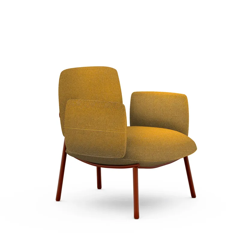 Обивка выполнена из ткани с тройной защитой (водоотталкивающей, грязе- и маслостойкой); наполнение — формованный пенополиуретан плотностью 55, обеспечивающий высокий комфорт и долговечность.