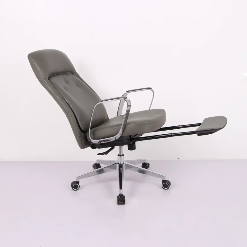 Натуральная кожа черного цвета , поясничная поддержка, 3-позиционная регулировка по высоте. Высокоплотный поролон с высокой упругостью, 3-уровневая газовая пружина, подлокотники из алюминиевого сплава, коническая основа из алюминиевого сплава, бесшумные ролики малого диаметра, выдвижная откидная подставка для ног скрытого типа.