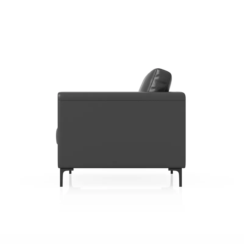 Высококачественная обивка из натуральной кожи; высокоплотный и упругий пенополиуретан; каркас из импортного деревянного бруса; ножки и фурнитура из металла с черным порошковым покрытием.