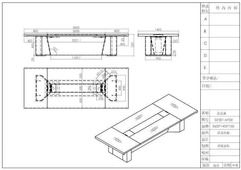 Конференц-стол | GF301-MT04 | 3600*1400*750mm | Переговорная комната среднего размера Для 12-14 человек Рекомендуемая площадь использования - около 41 кв. м |
