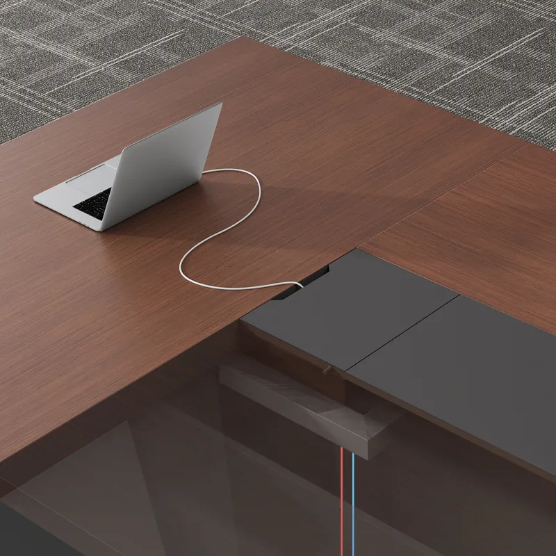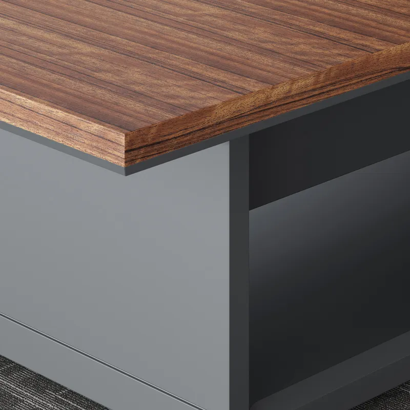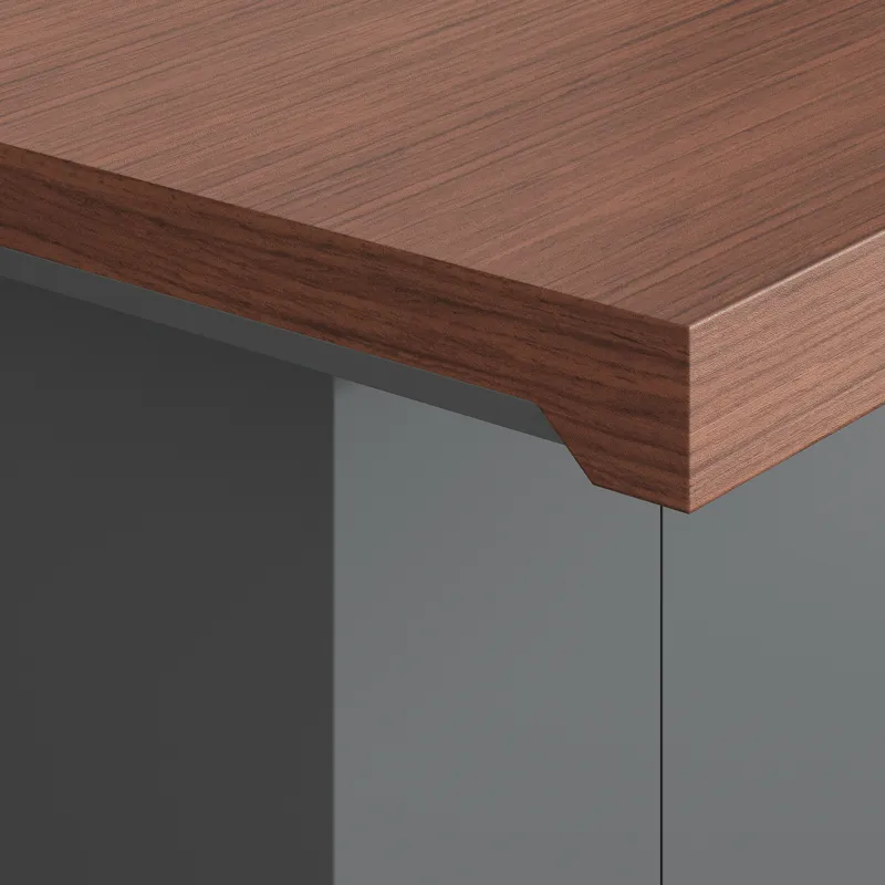 1、Основной материал: используется высококачественная МДФ, экологически чистый продукт.Шпон: применяется импортный натуральный шпон ореха с подбором текстуры и цвета, технология цельной облицовки с фигурными кромками.