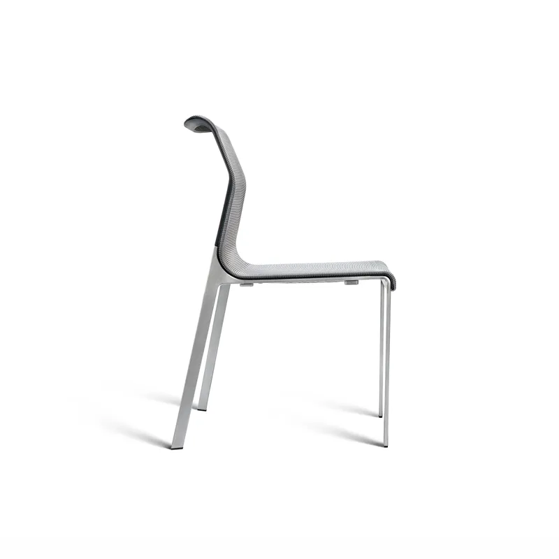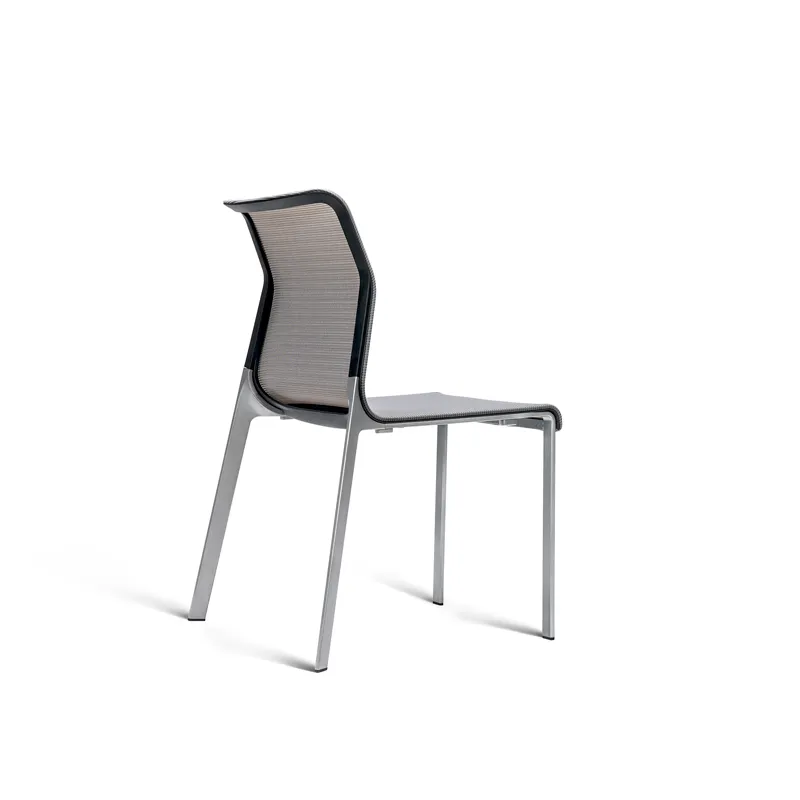 Передние ножки из стали с серебристым лакокрасочным покрытием, задние ножки из алюминиевого сплава с серебристым лакокрасочным покрытием, черные нейлоновые наконечники на ножках, корпус кресла из черного нейлона.