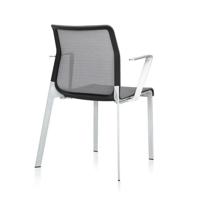 Подлокотники с шлифованной поверхностью и глазурованной отделкой; передние ножки — сталь с серебристым лакокрасочным покрытием; задние ножки — алюминиевый сплав с серебристым лакокрасочным покрытием; черные нейлоновые накладки на ножках; корпус кресла из чёрного нейлона.