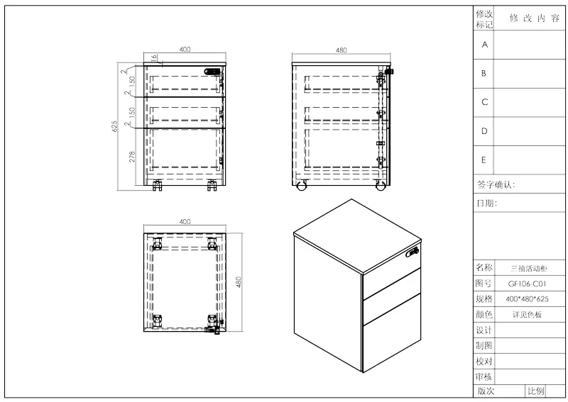 Мобильная тумба с тремя ящиками | GF106-C01 | 400*480*625mm | Офис сотрудников, открытая офисная зона |