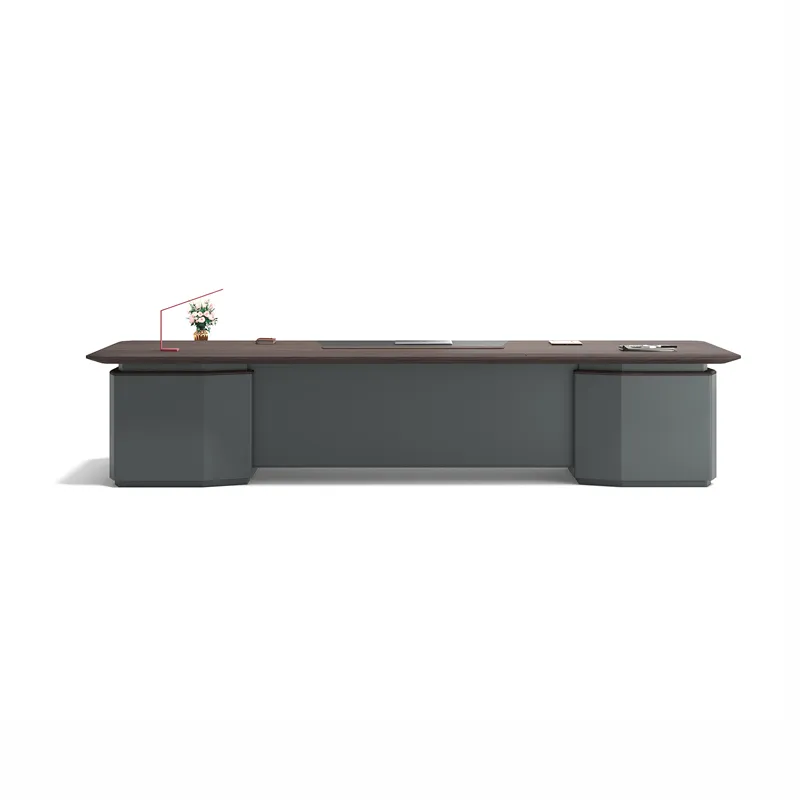 Модель GF-302 серии «Цзунь» — это высококлассный письменный стол для руководителей, вдохновленный внешними характеристиками бронзового треножника «дин», воплощающий гармоничное сочетание современного минимализма и классических элементов. Каждая деталь демонстрирует стремление к бескомпромиссному качеству и безупречному вкусу.