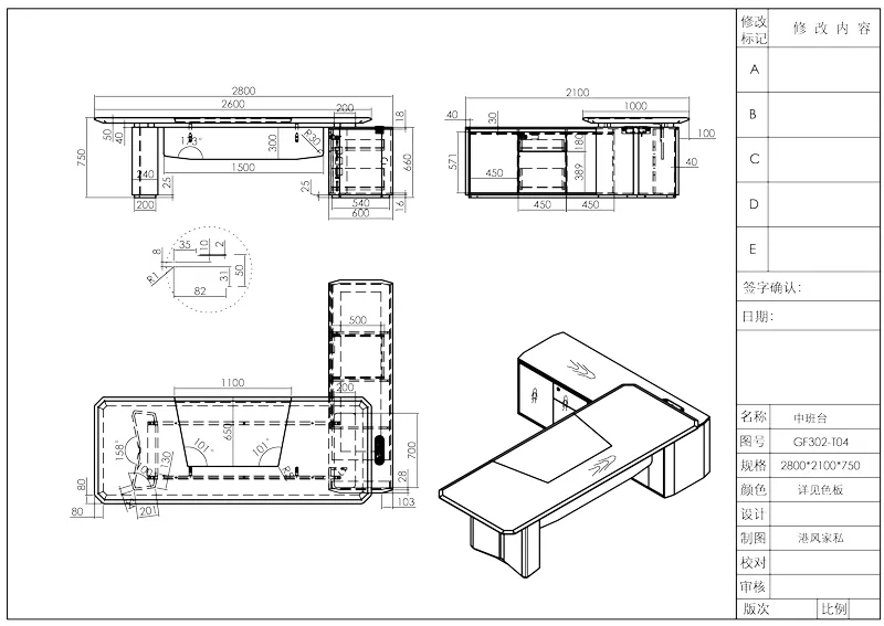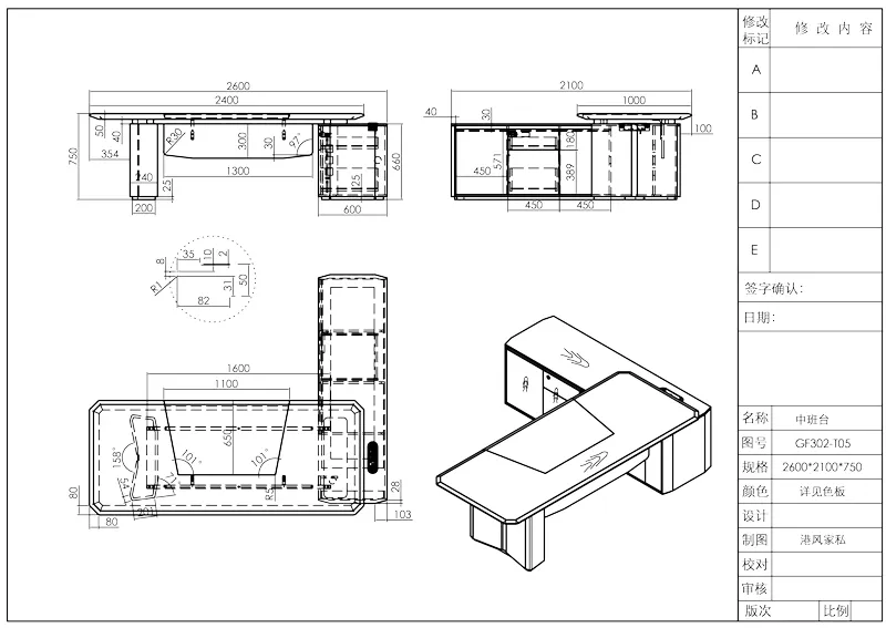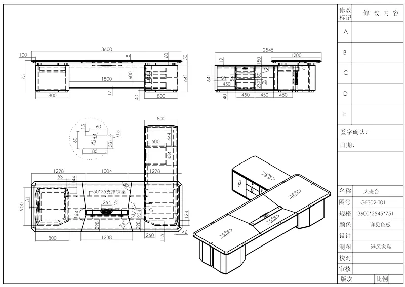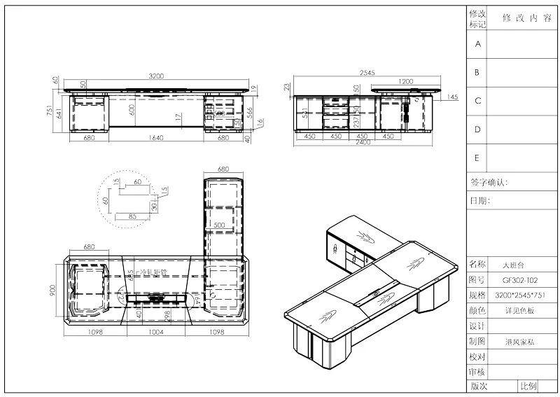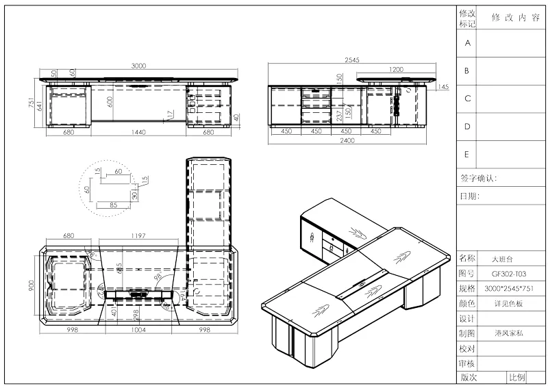 | 3 | Рабочий стол руководителя | GF302-T03L/R | 3000*2545*750mm | ||