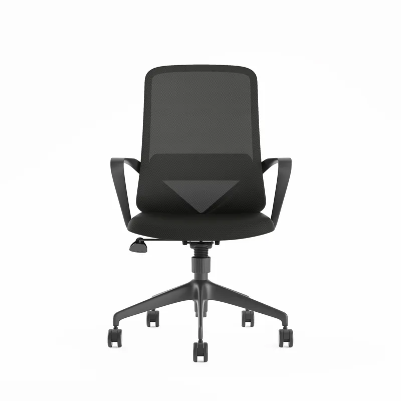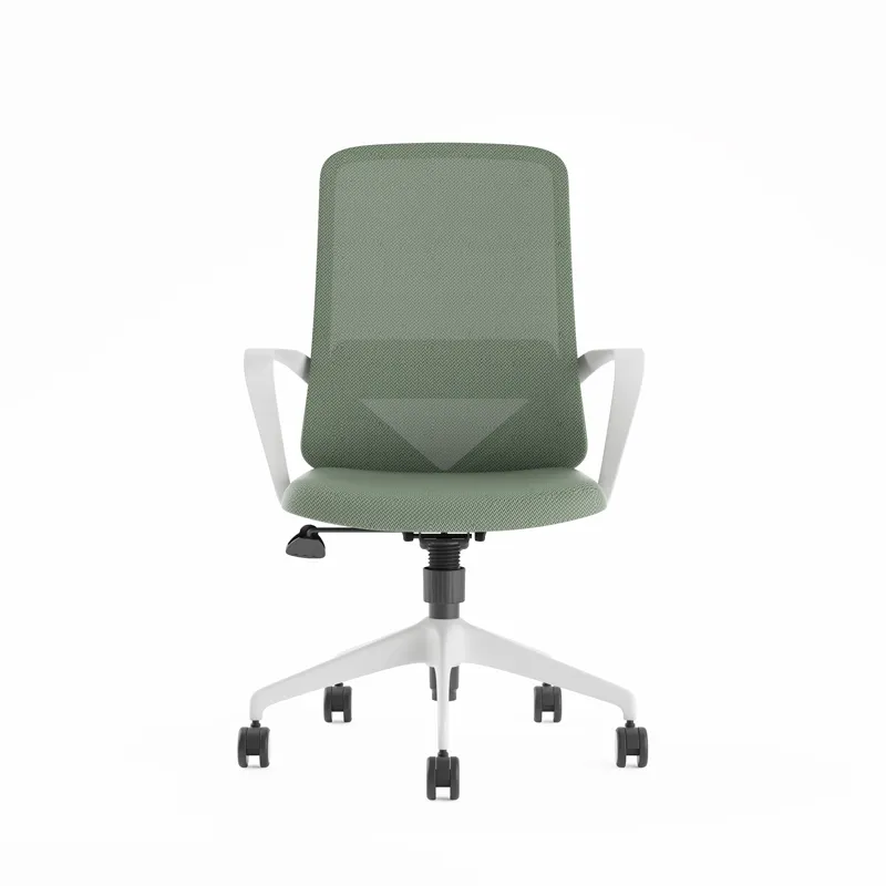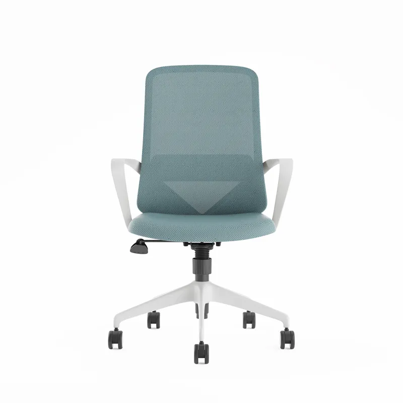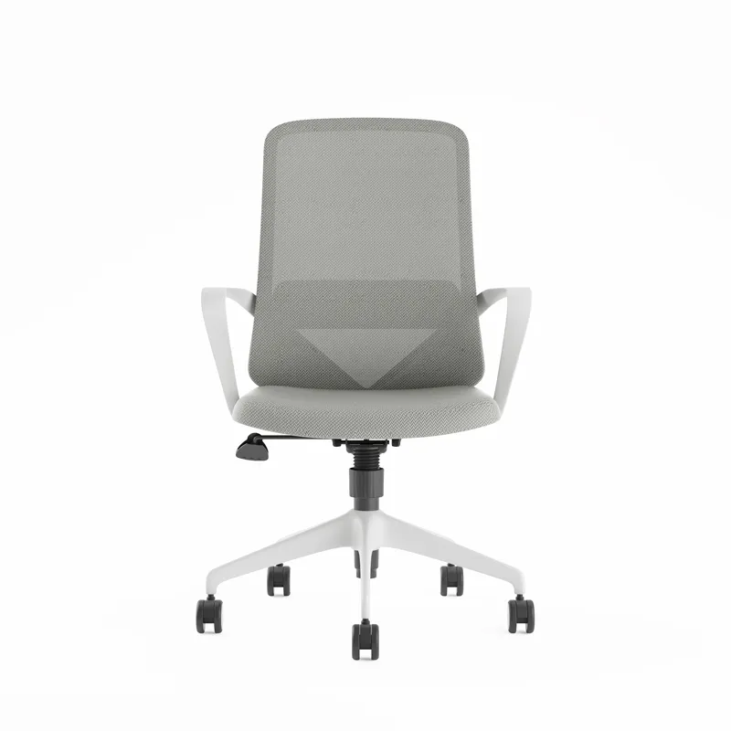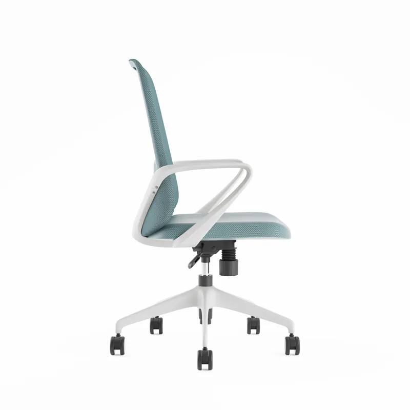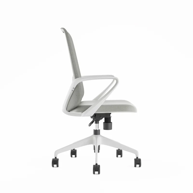 Нейлоновая рама спинки;спинка изготовлена из высококачественной сетчатой ткани «сэндвич»; фиксированные подлокотники из PP-пластика; поролон плотностью 30 единиц; нейлоновое основание диаметром 320 мм; белые нейлоновые колёсики 60R; фиксированная поясничная опора с мягкой накладкой из PP; газлифт «Лайт» класса 3 с порошковым покрытием; цвет сетчатой ткани можно выбрать.