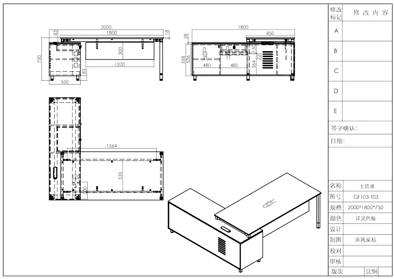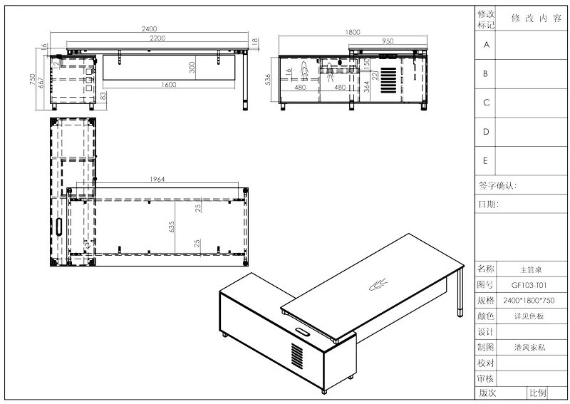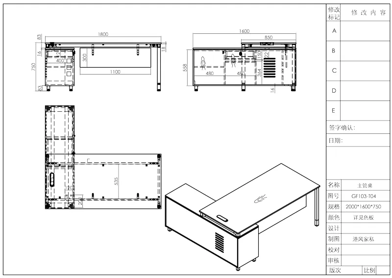 Серия столов менеджера Time93 GF103 (панельный тип)