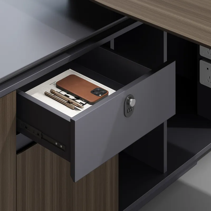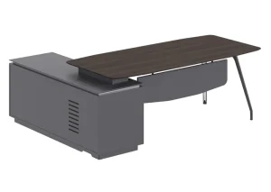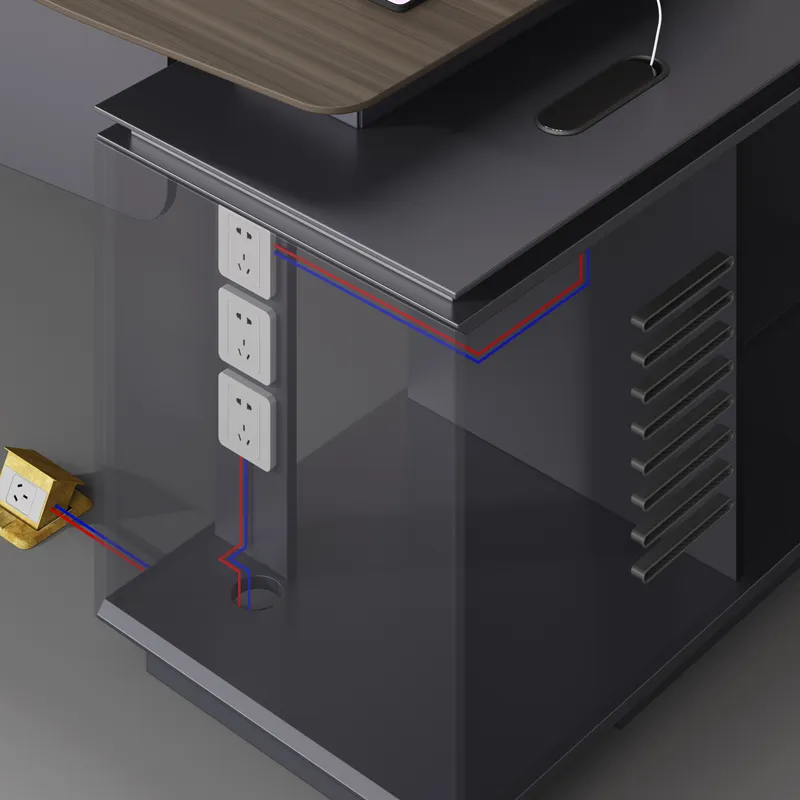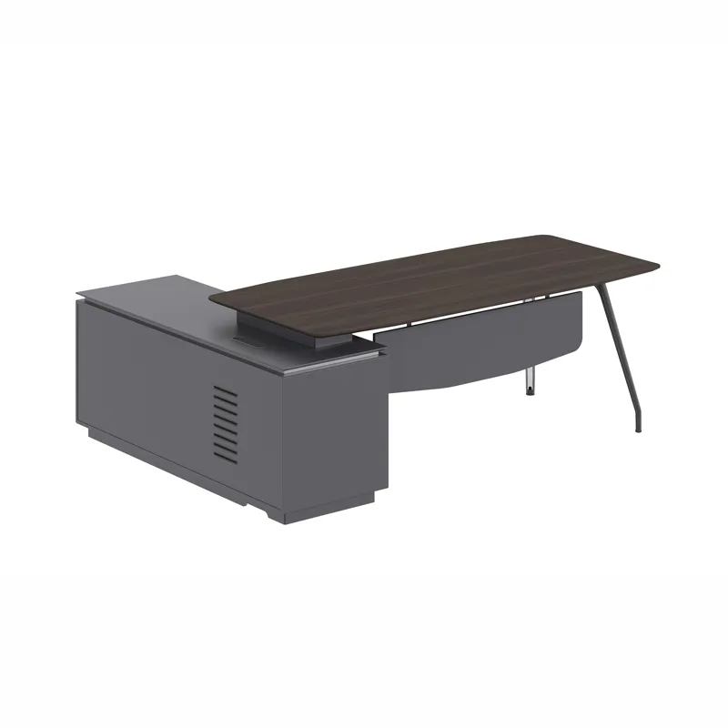 Модель GF-105 серии «Чи» — это современный письменный стол для управленческого персонала. Дизайн ножек стола напоминает несущиеся копыта, что символизирует стремительное развитие бизнеса, его процветание и успех.
