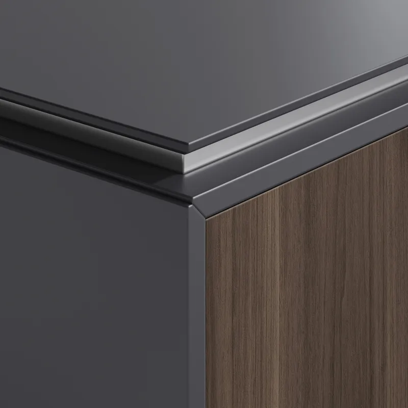 3、Кромка ПВХ: используется высококачественная кромочная лента ПВХ, на стыках применяется технология тонкой кромки, на контактных поверхностях — технология толстой кромки.
