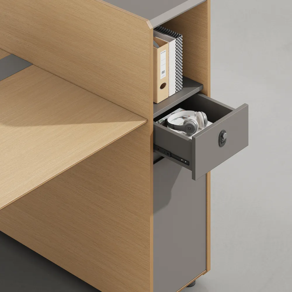 Стол сотрудника GF-104 серии «Жун» имеет несколько размеров и комбинаций, что позволяет использовать его в различных офисных сценариях.