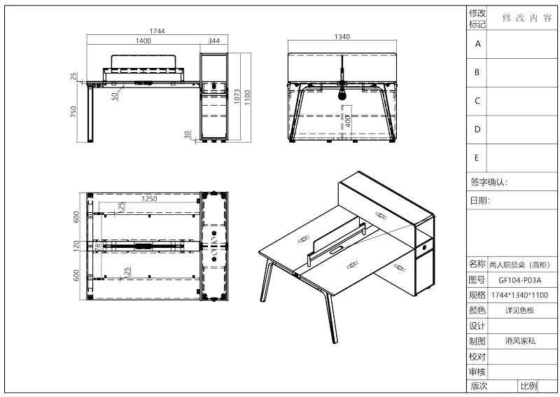 GF104-P03A | 1744*1340*1100mm | Кабинет для персонала Открытая офисная зона |