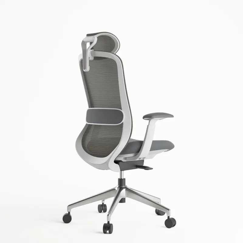 Нейлоновая рама спинки;спинка выполнена из высококачественной нейлоновой сетки; подголовник с регулируемой высотой; сиденье из формованного пенополиуретана плотностью 50; подлокотники с 4D-регулировкой, с мягкими накладками из PU.