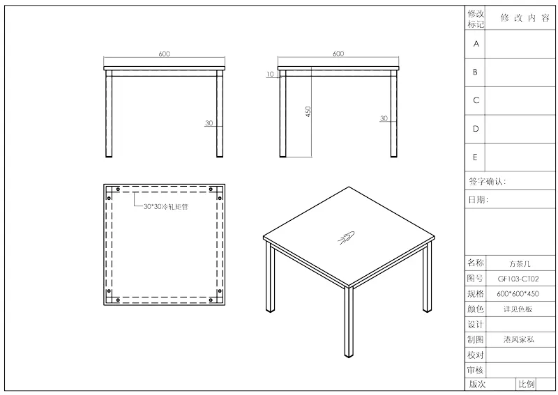 Квадратный журнальный столик | GF103-CT02 | 600*600*450mm | Кабинет менеджера, открытая офисная зона |