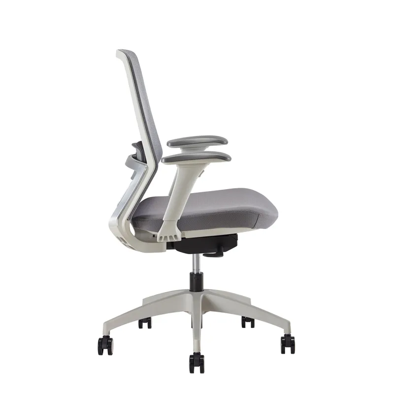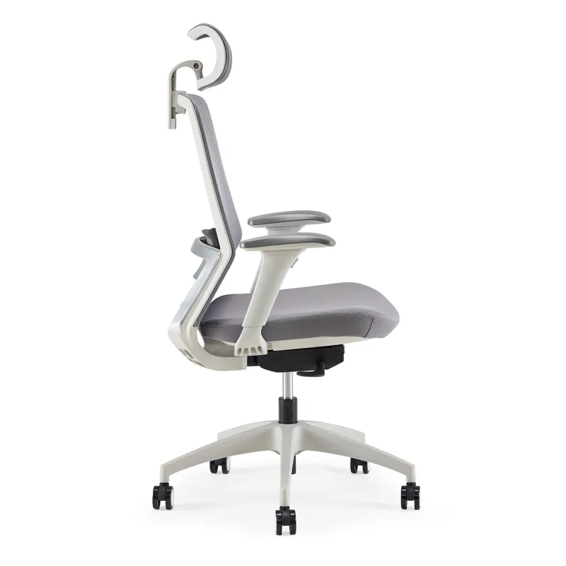 Спинка кресла выполнена с нейлоновой рамой и высококачественной нейлоновой сеткой, подголовник регулируется по высоте, а мягкая поясничная поддержка также имеет регулировку. Кресло оснащено 4D подлокотниками из PU с возможностью изменения высоты, глубины, угла и поворота. Самонастраивающийся механизм с четырьмя положениями фиксации обеспечивает комфортную посадку, а сиденье может перемещаться вперёд и назад на 53 мм. Основание выполнено из нейлона диаметром 345 мм и оснащено белыми нейлоновыми колёсами диаметром 60 мм. Сиденье изготовлено из формованного пенополиуретана плотностью 50#, а газлифт 3-го класса «Лайтер» имеет порошковое покрытие, обеспечивая надёжную и плавную регулировку высоты.