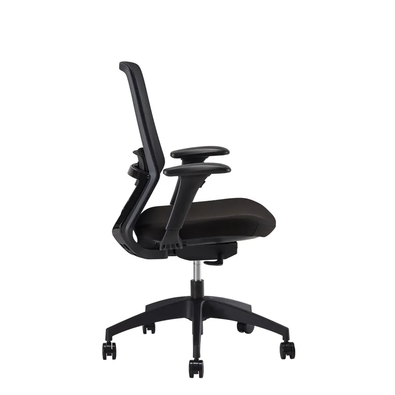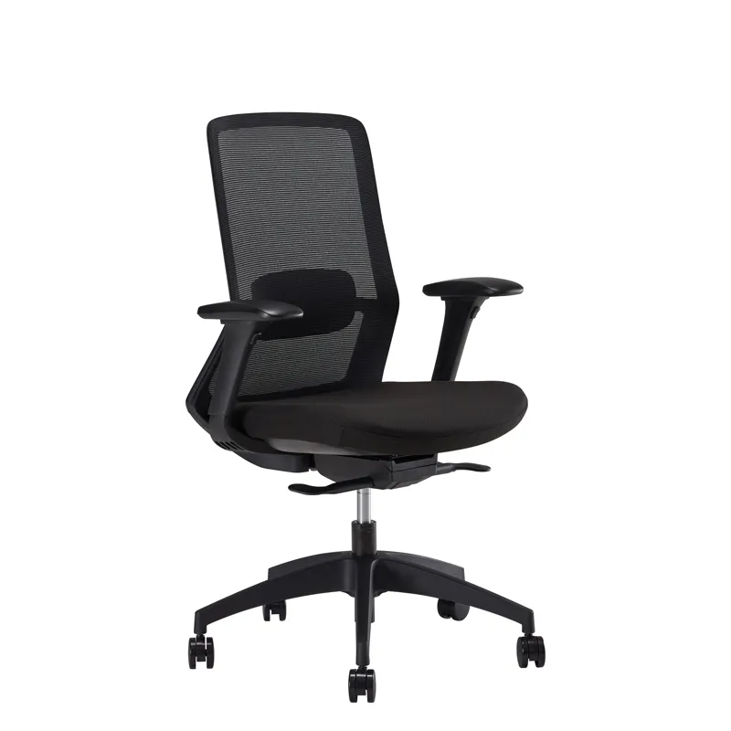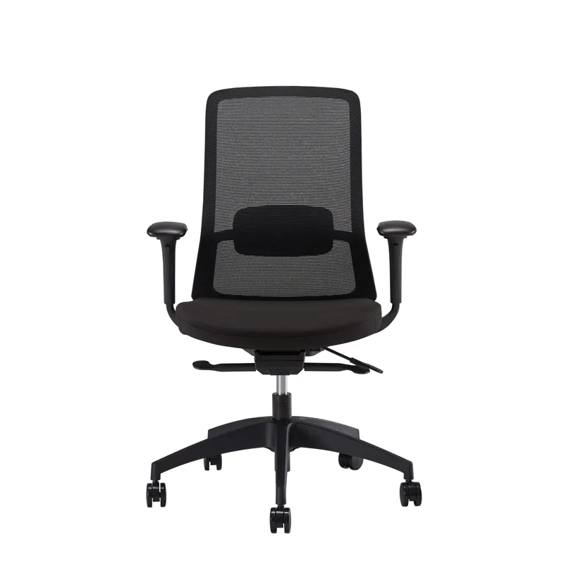 Спинка кресла выполнена с нейлоновой рамой и высококачественной нейлоновой сеткой. Мягкая поясничная поддержка регулируется по высоте, обеспечивая дополнительный комфорт. Кресло оснащено 4D подлокотниками из PU с регулировкой по высоте, глубине, углу и повороту. Самонастраивающийся механизм с четырьмя положениями фиксации и сиденье, которое может перемещаться вперёд и назад на 53 мм, позволяют подобрать оптимальное положение для пользователя. Основание изготовлено из нейлона диаметром 345 мм и оснащено белыми нейлоновыми колёсами диаметром 60 мм. Сиденье выполнено из формованного пенополиуретана плотностью 50#, а газлифт 3-го класса «Лайтер» с порошковым покрытием обеспечивает надёжную и плавную регулировку высоты.