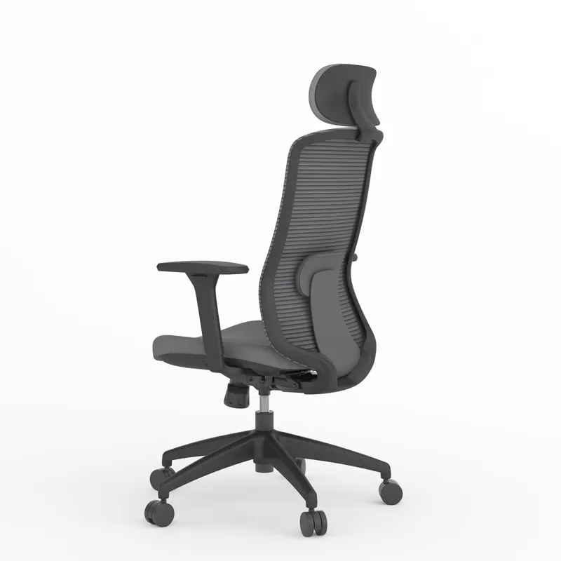 Нейлоновая рама спинки; спинка из высококачественной нейлоновой сетки; регулируемый по высоте подголовник; сиденье из формованного поролона плотностью 50#.